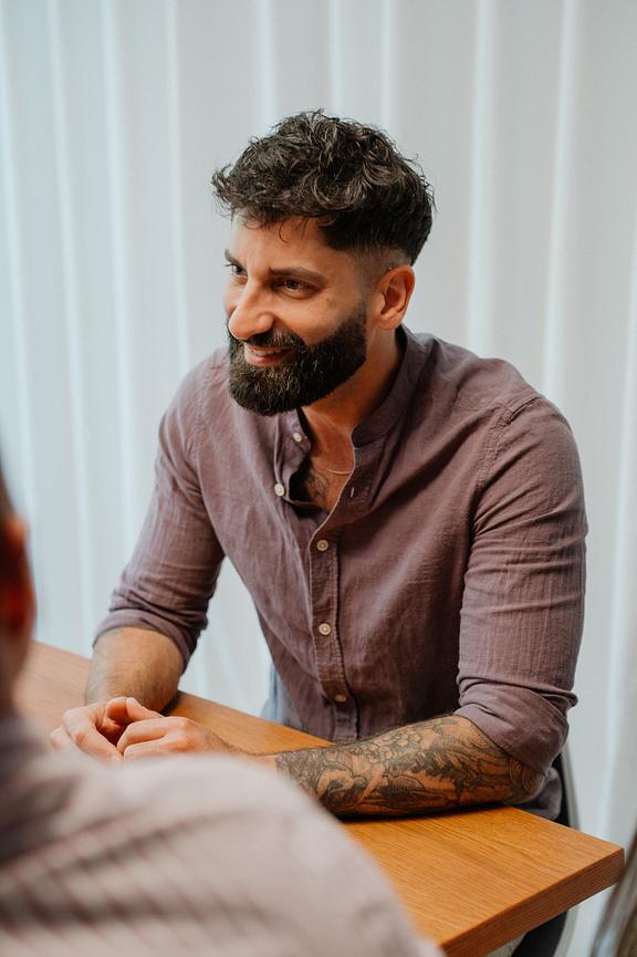 Er begleitet Menschen zu Beziehungs- und Lebensthemen queersensibel, ressourcenorientiert, diskriminierungskritisch und auf Augenhöhe, mit interkultureller Perspektive. Seine Arbeit befasst sich unter anderem mit Dynamiken und Konflikten in Regenbogenfamilien, mit gesellschaftlicher Vielfalt, trans*-cis Beziehungen sowie alternativen Lebensmodellen. Er ist Aktivist, Papa und Mitgründer des Social Start-ups Diversity Factory.